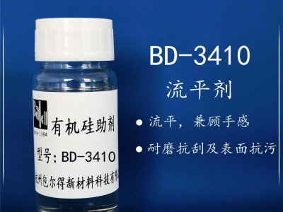 用于控制液相材料表面张力的助剂。本品特点是具有极好的干爽手感。在有效降低体系表面张力,提高底材的润湿性、增加表面滑爽及抗划伤性和防粘连性、改善流平、提高光泽度、防止贝纳德旋涡等亦有出色表现。